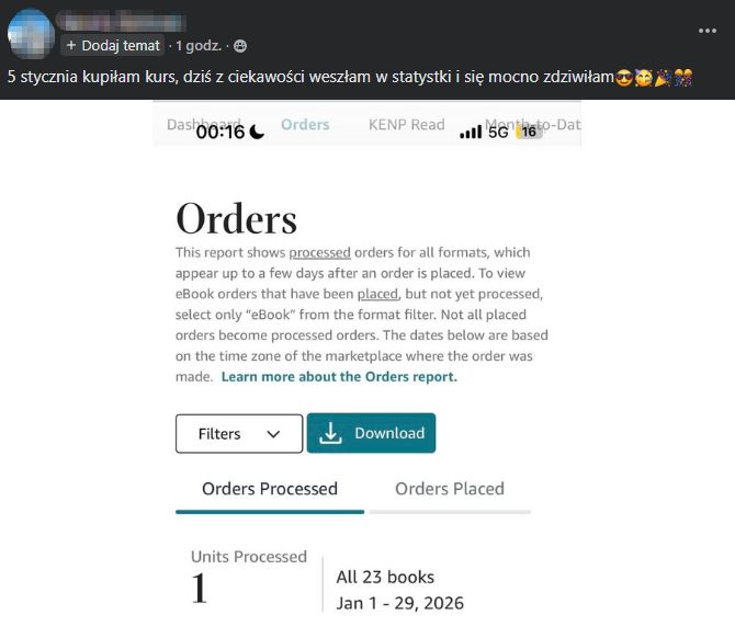 Opinie kursu Produkt na Amazonie w 24h i sprzedaży na Amazon KDP: